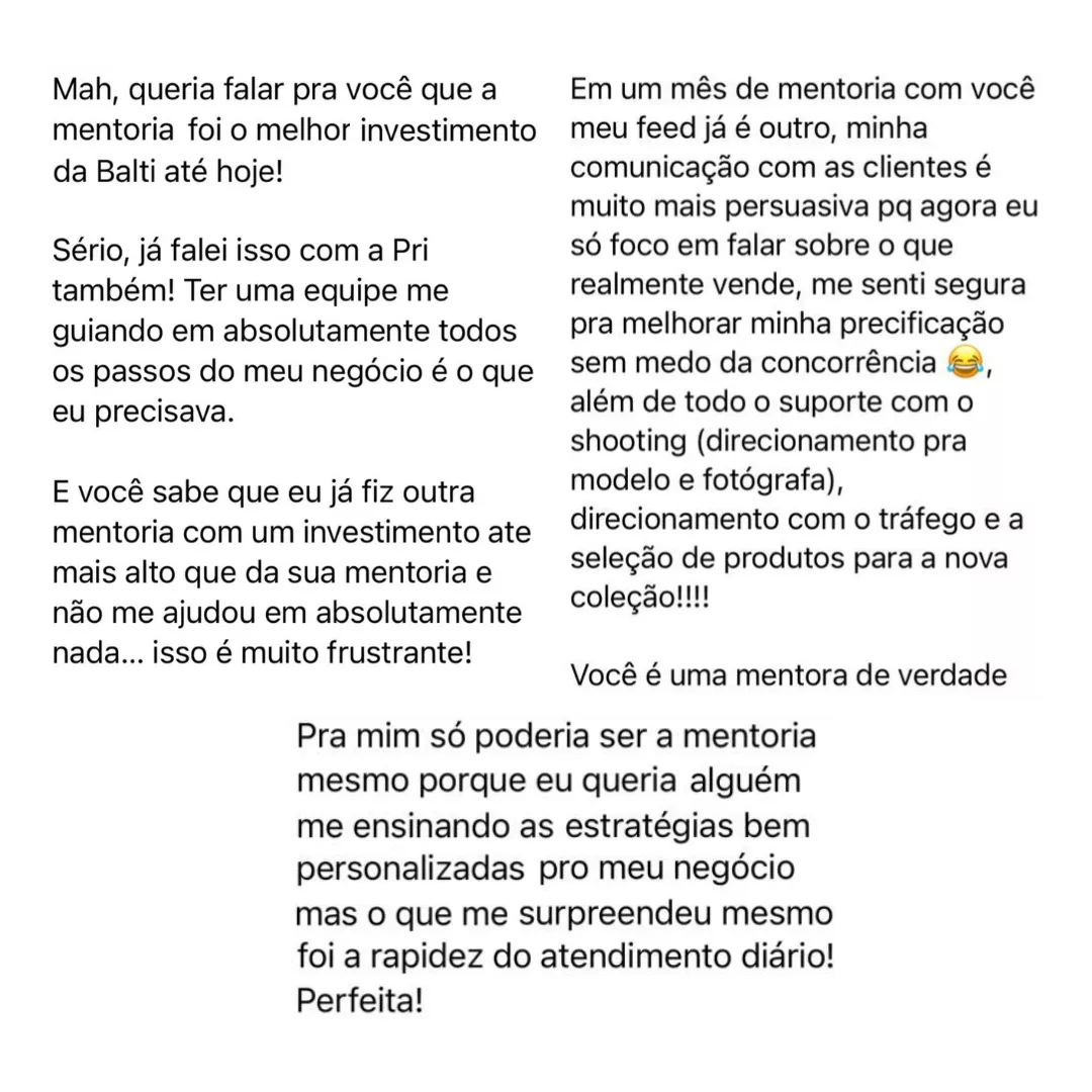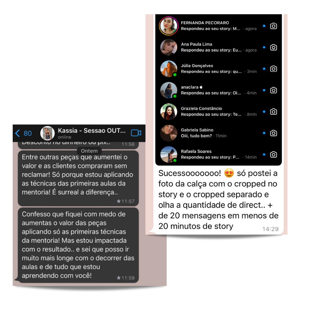A Camila vem atraindo cada vez mais a cliente ideal, sem liquidação ou promoção, hoje com as estratégias da mentoria ela faz vendas de quase mil reais para uma única cliente e tem seu faturamento crescendo cada vez mais.