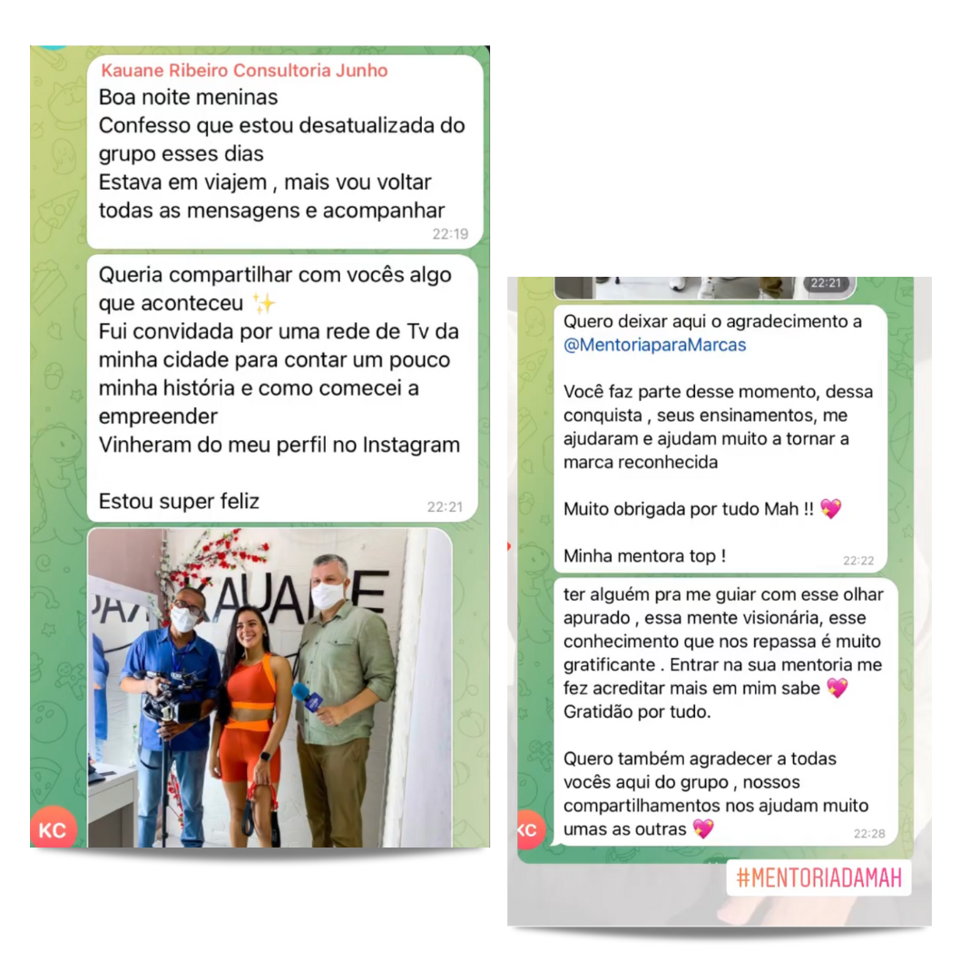 Você pode tirar as suas dúvidas a hora que quiser em nosso grupo de Whatsapp, e receber as orientações da Mariah e da equipe de Marketing.